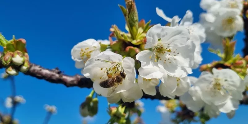 Sedaj na območju vzhoda cveti črni trn, pozne vrste vrb, marelice, breskev in tudi že češnje. Poleg zgodnjih cepljenih sort cvetijo tudi divje češnje. Na območju goričkega se le te odpirajo.